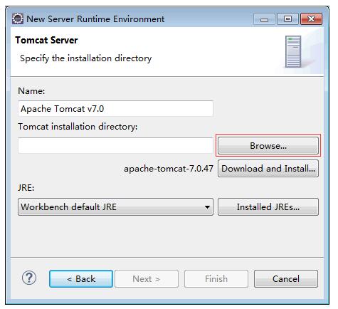 選擇Tomcat的安裝路徑。
